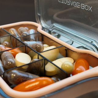 Our pill organizer is designed to be airtight and moisture-resistant, providing effective protection against humidity. However, it is not entirely waterproof and should not be submerged in water.